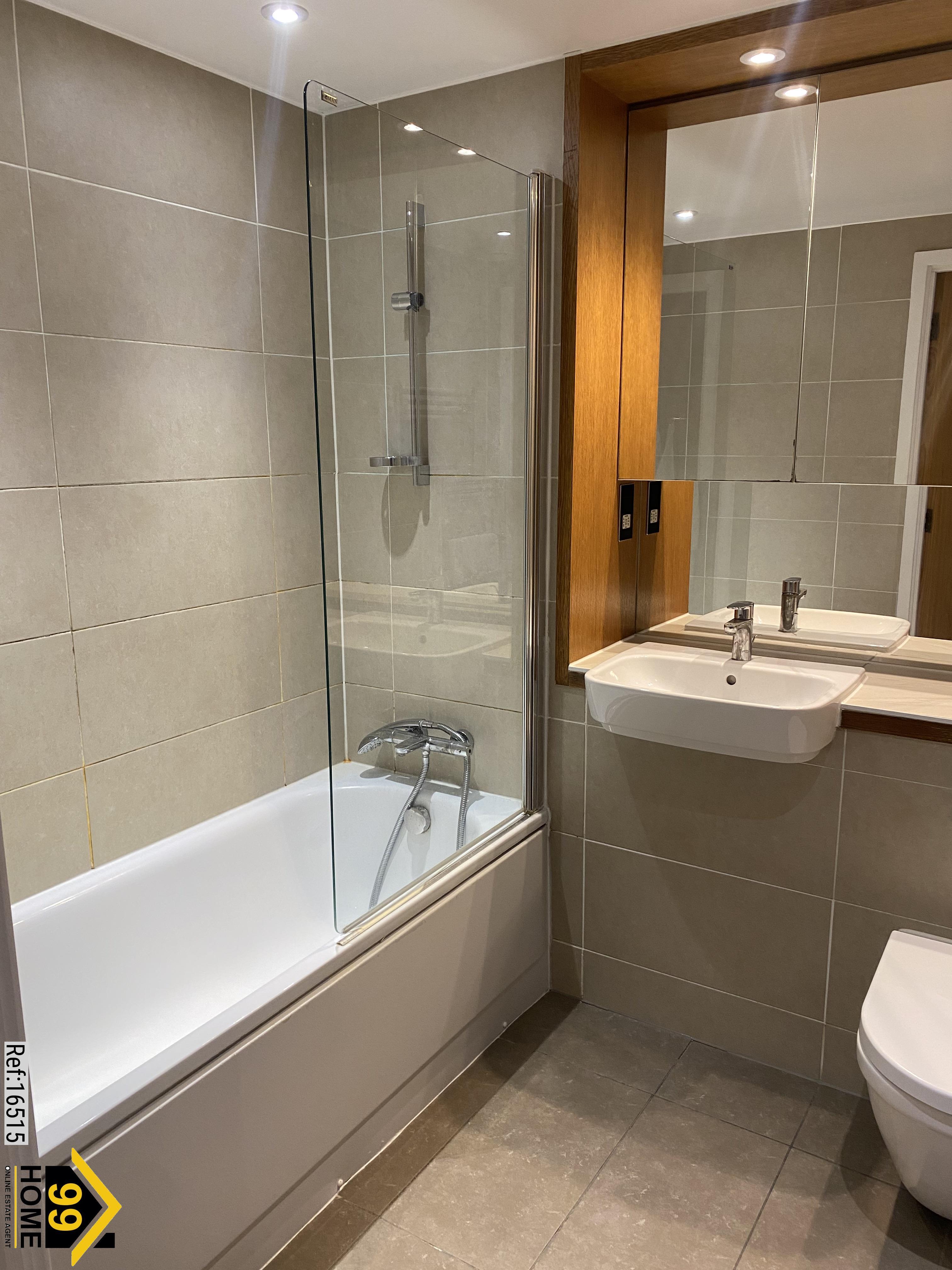 The apartment also features a generous contemporary double bedroom with a built in wardrobe. Additional storage is available in the hallway, which also houses the washing machine.